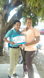 El brillante estudiante Jeremi Saúl Santana, de la escuela Básica María Auxiliadora, fue reconocido en su plantel educativo durante la segunda etapa en la Olimpiada de Lectura, que realizo el Distrito Educativo 03 de Barahona, por la técnica de Lengua Española.