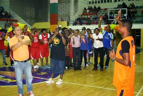 El periodista Teuddy Sanchez, como siempre en el lugar de los hechos cubriendo la fuente deportiva, esa es la mística de un excelente comunicador,mientras cubría las incidencias del acto inaugural del torneo superior de baloncesto de esta ciudad, presidida por Francisco Vargas.