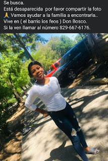 Esta joven de apellidos Cuevas Perdomo, esta desaparecida, si la ven en su sector o en cualquier lugar, favor de hablar con Ella y llamar al celular que esta en la imagen. Su solidaridad en este momente de vital importancia, a  los fines de llevar la paz a sus familiares.