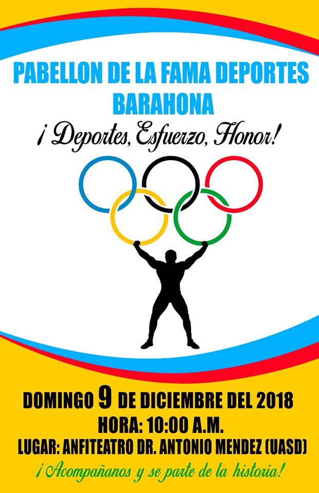 El Pabellón de la Fama del Deporte de Barahona, presidida por el doctor Bienvenido Matos Perez, trabaja arduamente con la Unión Deportiva de Barahona en el montaje del ceremonial de la exaltación a deportistas, propulsores y a entidades a efectuarse el próximo 9 de Diciembre a las 10:00 de la mañana, en el auditórium, Dr. Antonio Méndez.