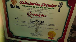El conductor del programa Orientación Popular, doctor Paredes Olivero Feliz, que se transmite por  el canal 57 de Empresas Radiofónicas, al cumplir su veinte aniversarios , tributo un reconocimiento al destacado trebejista Still Perez Guzmán, por su meritoria participación en los primeros juegos patrios celebrados en Madrid, España.