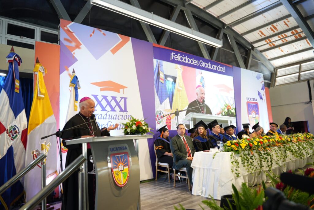 El acto inició con la invocación a Dios y las palabras de exhortación a cargo de monseñor Andrés Napoleón Romero Cárdenas, obispo de la Diócesis de Barahona y gran canciller de la UCATEBA, quien destacó el valor de la educación superior como instrumento de transformación humana y social, al tiempo que animó a los nuevos egresados a ejercer sus profesiones con responsabilidad, ética y espíritu de servicio.