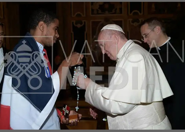 En aquella oportunidad, Feliz Peña, un militante católico, se presentó envuelto con la bandera dominicana ante el papa Francisco.